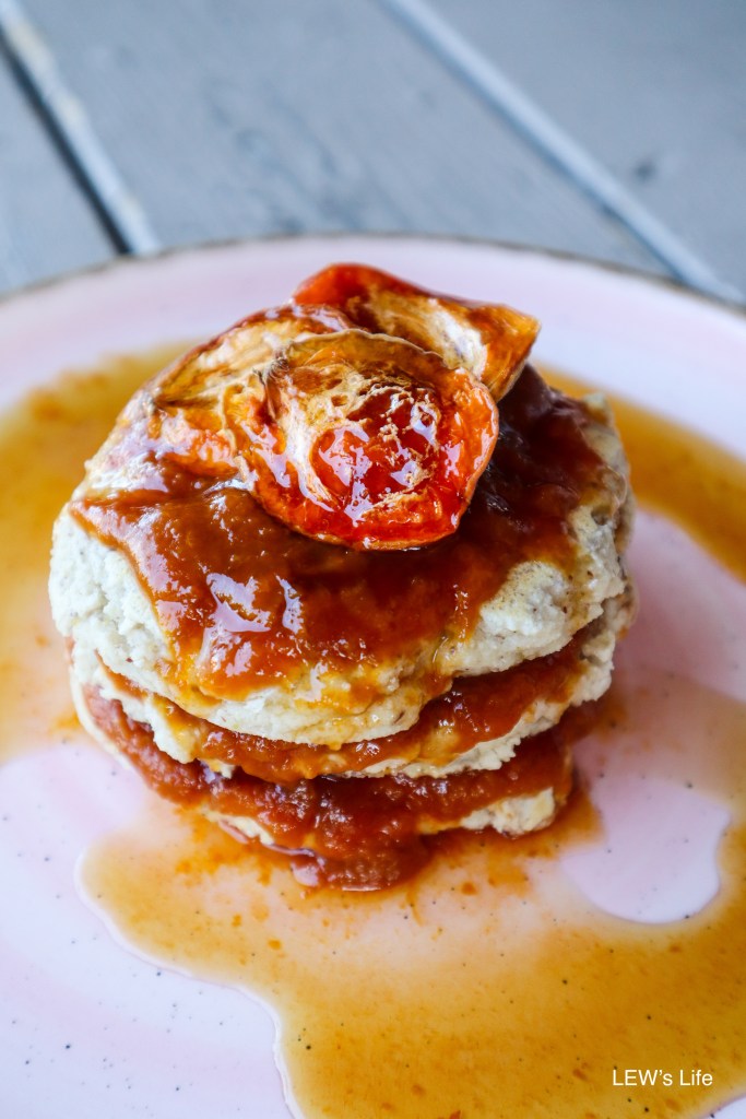 6) Serve with your favourite toppings, I have a homemade apricot spread and maple syrup on mine.